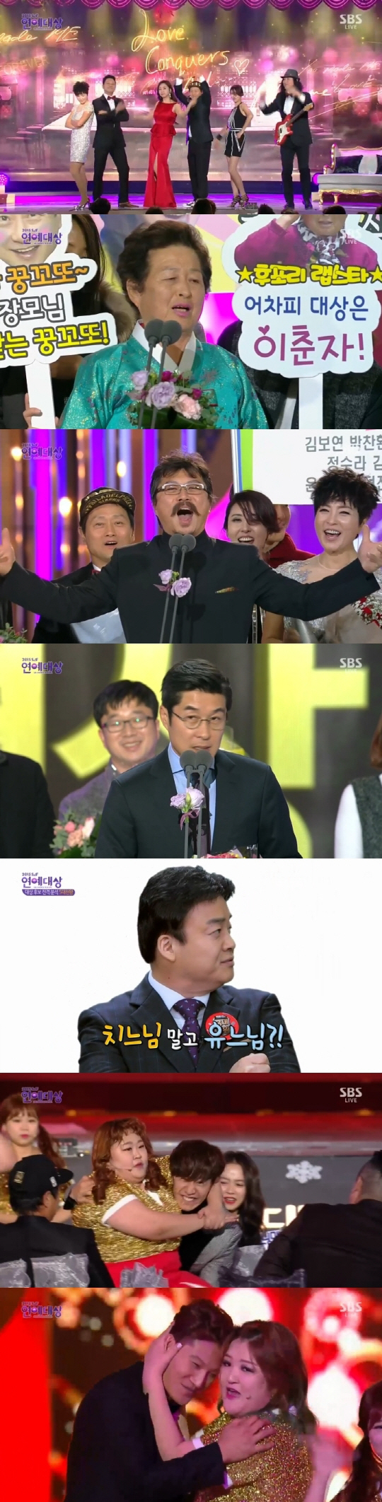 시상자들 역시 뻔한 시상멘트를 하지 않아 호평을 받았다. 특히 개그우먼 홍윤화와 개그맨 김준현은 시상에 앞서 치킨 먹방을 선보여 역대급 시상 에피소드를 탄생시켰고 시상에 나선 '앙숙커플'김구라·서장훈은 무대 위에서도 디스를 펼쳐 눈길을 끌었다. '연예대상'에 참석한 오정현을 겨냥한 '독설' 김구라는 서장훈에게 "인사라도 건네라"며 너스레를 떨어 민망한 상황을 웃음 짓게 만들었다.