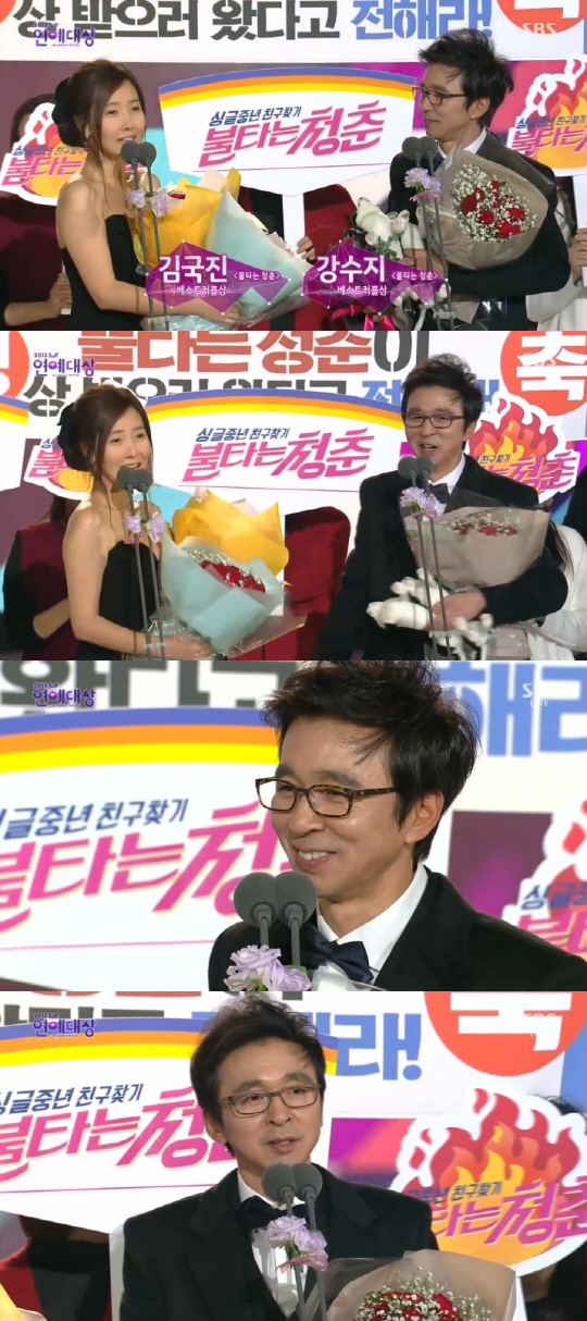 지난 30일 오후 생방송된 SBS '2015 연예대상'. 이날 화제는 대상도, 최우수상도 아니었다. 바로 '베스트커플상'을 수상한 '국수커플' 김국진, 강수진의 수상소감이었다.