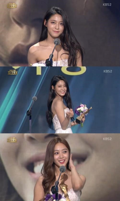 [스포츠조선닷컴 정유나 기자] 배우 설현이 시상식에서 포스터 속 아찔한 포즈를 재연해냈다