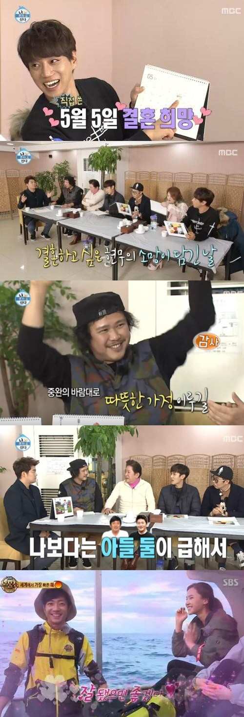 새해를 맞아 혼자남들도 대거 결혼 계획을 밝혀 관심을 끈다. 1일 방송된 MBC '나혼자산다'에서 전현무는 무지개 회원들에게 자신의 사진으로 만든 달력을 선물하며 "5월 5일에 결혼식을 올릴 것"이라고 밝혔다. 이에 올 3월 결혼을 앞둔 장미여관 육중완은 "저는 올 봄에 결혼을 앞두고 있다. 허니문 베이비를 갖고 싶다. 아이들을 좋아해 아들 딸 관계없이 3명 정도 낳고 싶다"고 말했다. 김용건은 두 아들 하정우 차현우의 결혼을 소망했다.