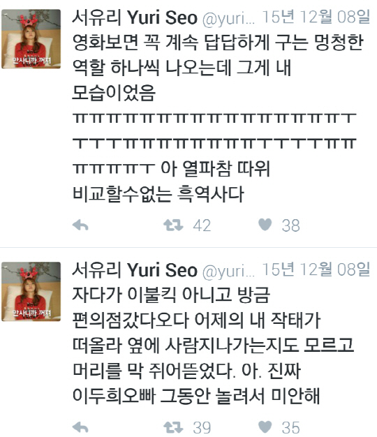 이후 서유리는 '악마의 편집'이라고 주장했으나, 녹화 직후에 자신의 무능함을 스스로 자책한 것.