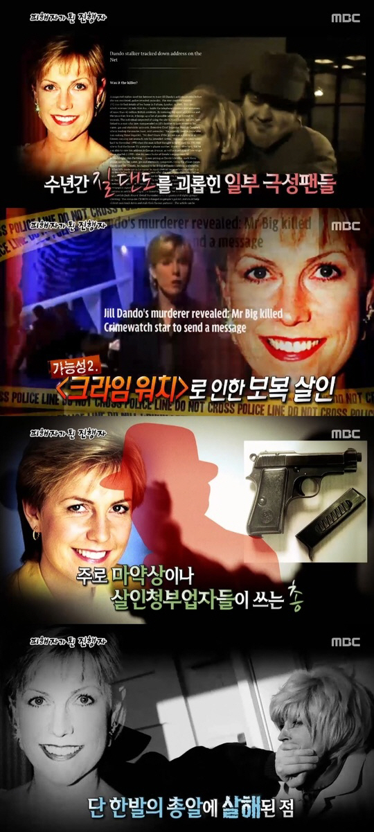 질 댄도는 1990년대 영국인들이 가장 사랑한 여자 아나운서였다. 1988년 뉴스 진행자로 데뷔한 그녀는 4년간 '크라임워치'를 진행했는데 왼쪽 관자놀이에 총을 맞은 상태로 발견돼 시청자들의 충격을 자아냈다. 유일한 목격자는 키 180cm 정도의 40대 백인 남성이 그녀의 집에서 나오는 걸 봤다고 증언했다.