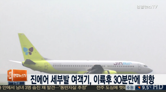 진에어 필리핀 세부발 부산행 여객기가 이륙 후 출입문에서 굉음이 들려 30분 만에 세부로 회항했다.