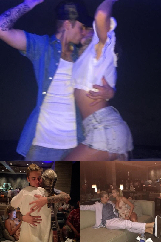 사진 속 저스틴 비버와 헤일리 볼드윈은 서로 격렬한 키스를 나누고 허그를 하는 등 애정 가득한 인증샷을 공개했다.