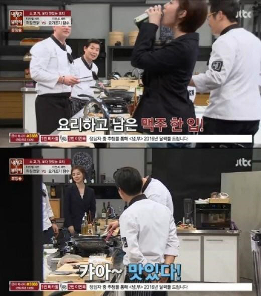 문채원은 이연복과 미카엘의 요리를 시식하고 쉬는 시간이 되자 맥주를 찾았다.