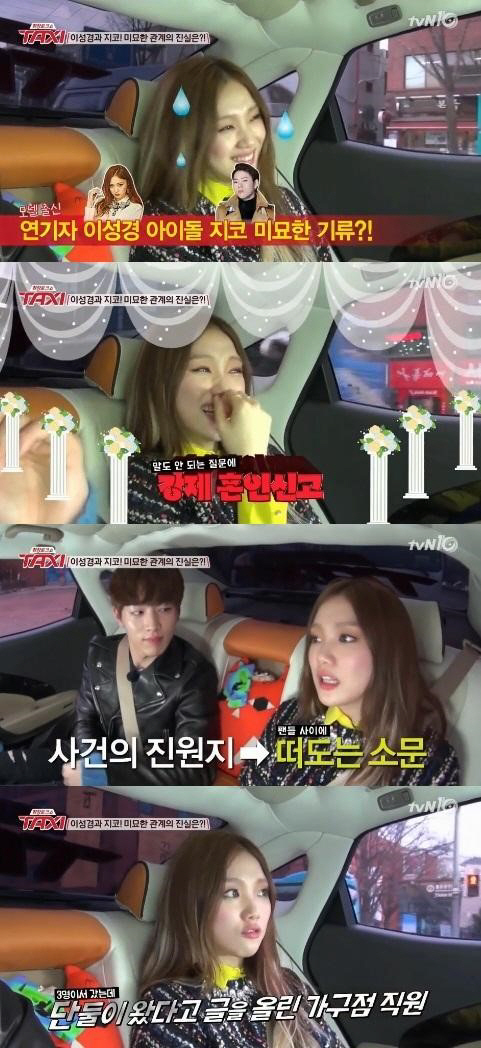 이성경은 "팬들 사이에 그런 이야기가 나왔다고 한다"며 "작년에 내가 독립을 했다. 논현동 가구거리 가는 길에 지코와 지인들이 있는 식당에 갔다. 가구 보러 간다고 하니까 지코가 할 거 없다고 따라온 것이다. 직원들이 단 둘이 가구를 보러왔다는 글을 올렸다고 하더라. 그래서 그런 소문이 났다"고 설명했다.