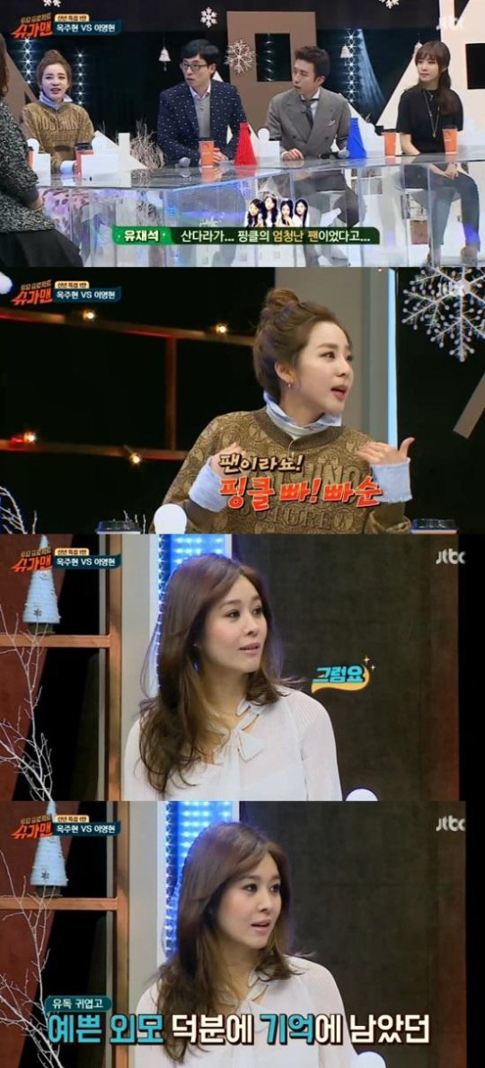 이에 옥주현은 "밤에 집 앞에서도 본 적이 있다. 사진도 찍어준 적 있다"며 "예쁜 외모 덕분에 기억에 남았었다"며 과거 산다라박을 만났던 당시를 회상했다.