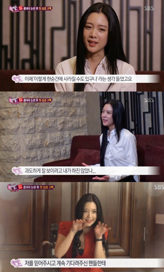 이어 그는 "9년 동안 사랑 받고 또 클라라라는 이름을 알리기까지 시간이 오래 걸렸는데 쌓아온 열정이 한 순간에 사라질 수도 있구나 생각 들었다"며 "너무 오랫동안 무명생활을 하고 한 순간에 사랑을 받아 과도하게 잘 보이려고 하지 않았나 싶다. 행동과 말을 할 때 여러 번 생각 해야겠다고 느꼈다"고 말하며 눈물을 흘렸다.