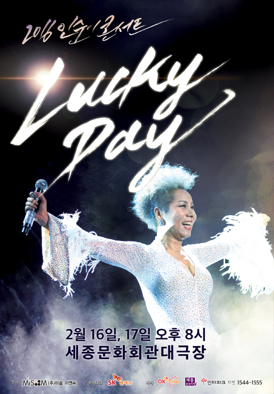 올해로 데뷔 39주년인 인순이는 드레스에서 핫팬츠, 트로트에서 힙합까지 시대와 세대를 초월한 전천후 가수이다. 공연은 2월 16일,17일 양일간 세종문화회관 대극장에서 열리며 VIP석 154,000원, R석 132,000원, S석 110,000원, A석 88,000원, B석 66,000원이다. 문의 1544-1555.