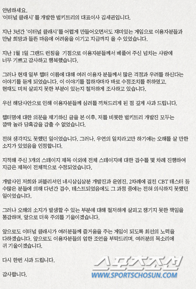 그런데 사과문의 내용은 기자로서도, 한명의 유저로서도 공감하기 어려웠습니다. 일벌백계(一罰百戒) 한다고 해도 잠잠해질까한 시안에 '우연', '오해' 라는 단어가 반복적으로 들어가서 사과의 느낌 보다 변명과 사건을 무마하는 느낌이 들었으니까요. 사과는 사과답게 해야 하는 것입니다.