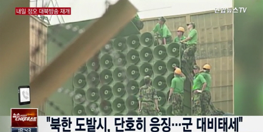 정부가 8일 낮 12시를 기해 대북 확성기 방송을 전면 재개하기로 결정했다.