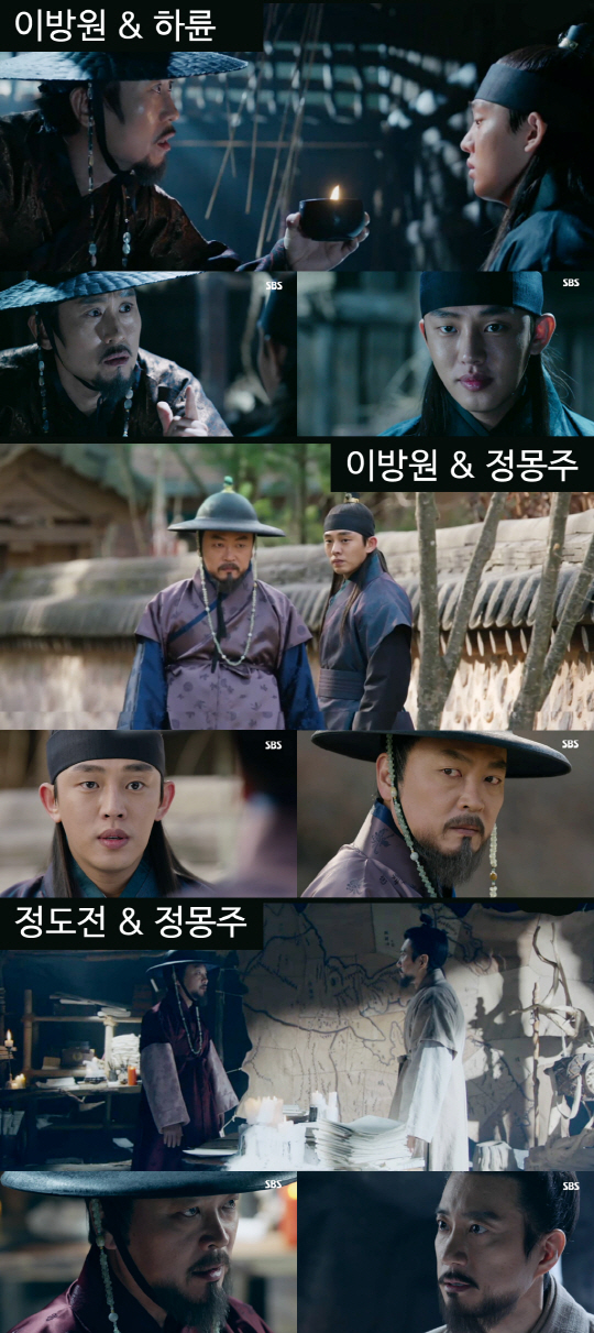 역사적으로 두 인물은 하여가와 단심가의 주인공이다. 그리고 곧 피로 물들 관계이기도 하다. 이방원에 의해 정몽주가 격살당하기 때문이다. 이성계파의 개혁에는 찬성하지만 방법에는 반기를 든 정몽주. 이방원은 그런 정몽주에게 서서히 반감을 갖기 시작했다.