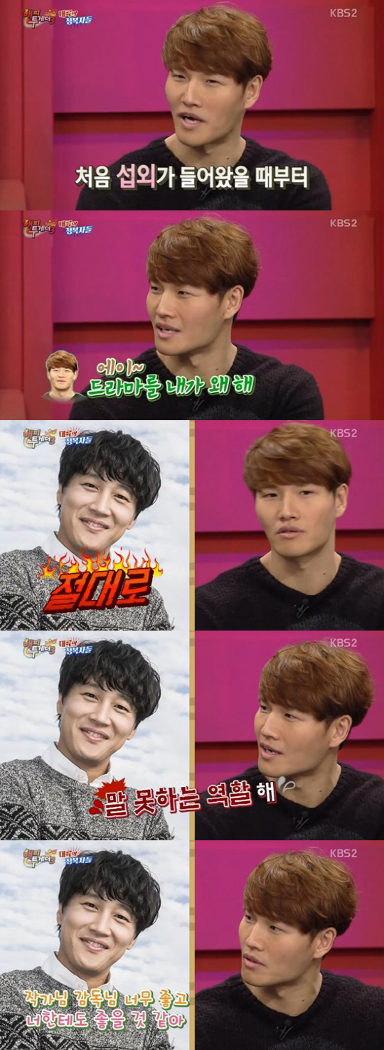 [스포츠조선닷컴 정안지 기자]'해피투게더' 김종국이 연기 욕심을 드러냈다.