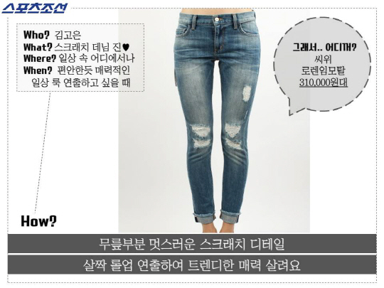 #어디꺼 #스포츠조선 #치즈인더트랩 #김고은 #데님진 #멋스러운_일상템의_최고본좌 #스크래치데님 #씨위