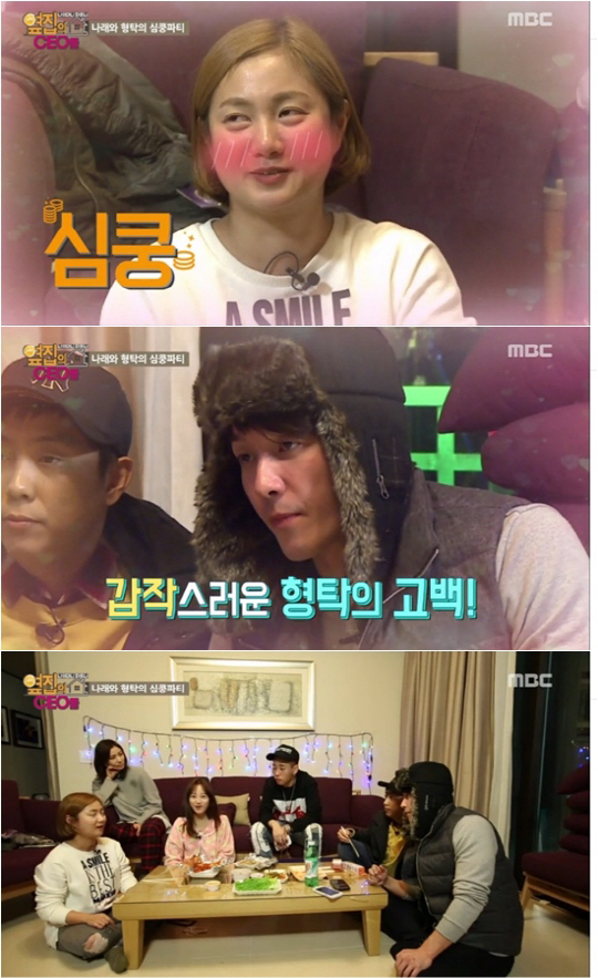 이 영상에서, 심형탁이 당시 전화를 받은 박나래는 술에 취한 목소리로 "오빠 어디야?"라며 고함을 쳤다고 폭로하자 박나래는 오해라며 손사래를 쳐 후일담이 어떻게 될지 궁금증을 불러 일으키고 있다. 자세한 내용은 8일 오후 6시 10분에 방송되는 '옆집의CEO들' 3회분에서 확인할 수 있다.