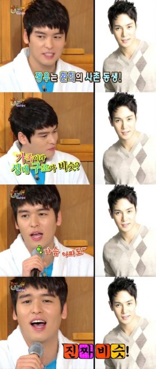 이종사촌 지간인 환희와 이장우가 '정글의 법칙'에 출연한다는 소식이 전해져 화제인 가운데, 과거 이장우가 환희 성대모사에 나선 모습이 화제다.