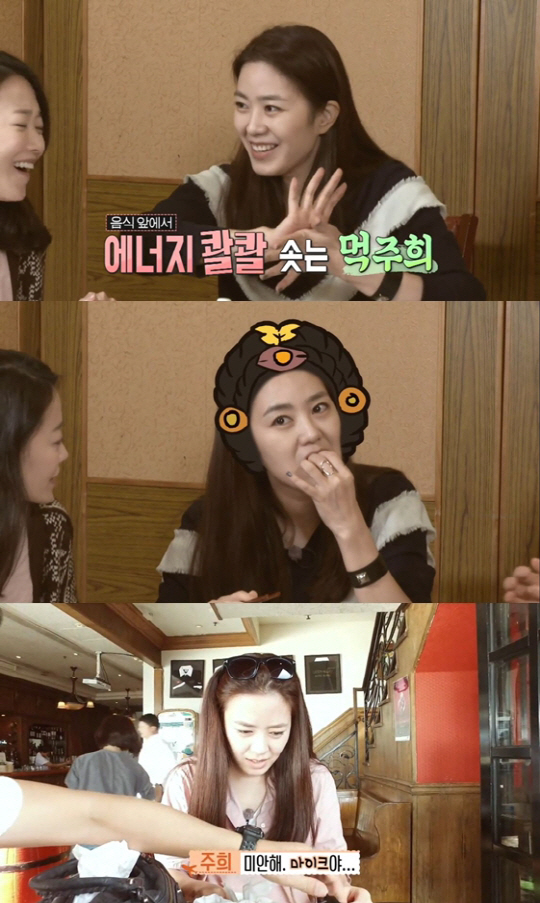 지난 8일 방송된 채널A '동갑내기 여행하기'에는 김주희, 서현진, 이지애, 문지애 등 미녀 아나운서 4인방의 좌충우돌 여행기 3탄이 공개됐다. 이날 김주희는 특유의 복스러운 먹방으로 시청자들을 사로잡았고, 먹방계의 신흥 강자로 떠올랐다.