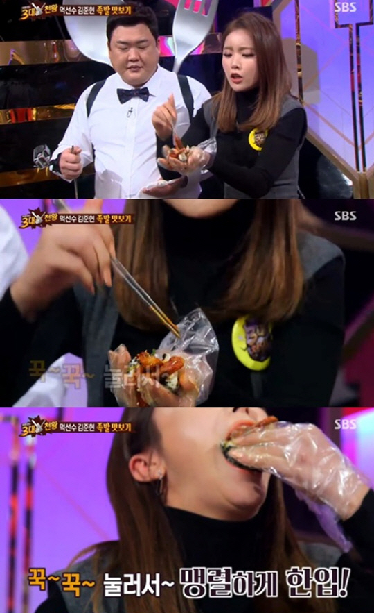 [스포츠조선닷컴 정안지 기자]'백종원의 3대천왕' 홍진영이 폭풍 족발 먹방을 선보였다.