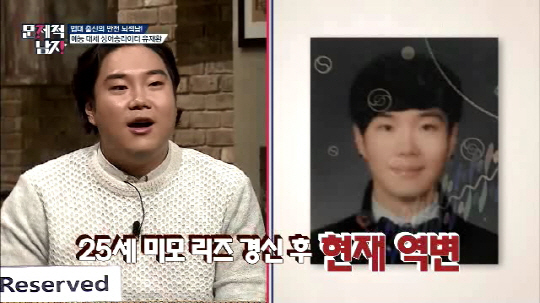 유재환은 최근 진행된 tvN '뇌섹시대-문제적남자' 녹화에 참여했다. 그는 리즈 시절 주민등록증 사진을 공개, 눈길을 끌었다. 현재와는 사뭇 다른 얼굴에 뇌섹남들은 "역변의 아이콘이다. 무슨 일이 있었던 거냐"고 입을 모았고 유재환은 "스물 다섯 살 때다 많이 먹어서 2년 만에 이렇게 됐다"고 털어놔 웃음을 안겼다.