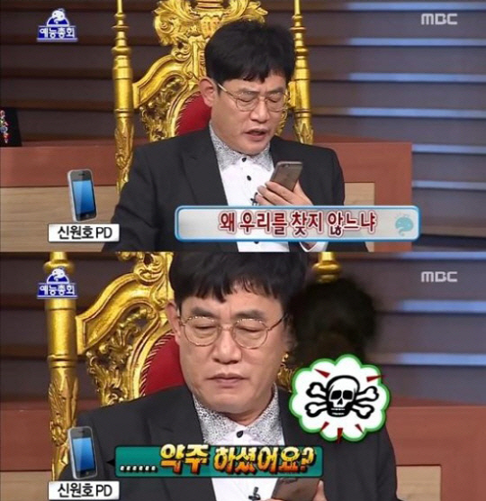 전화상으로 이를 듣던 신원호 PD는 "약주하셨냐"고 질문해 웃음을 자아냈다.