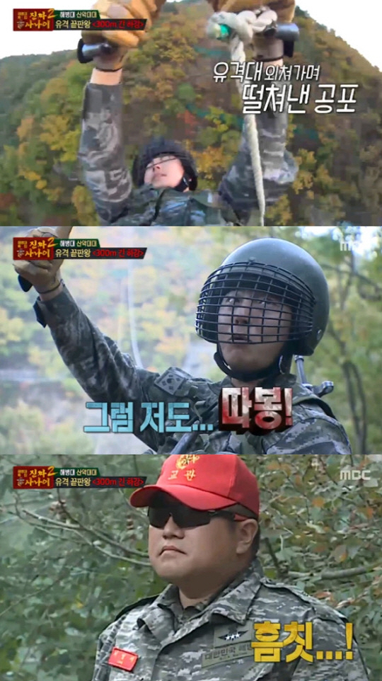 '진짜사나이' 이성배가 300m 외줄 하강에 성공했다.