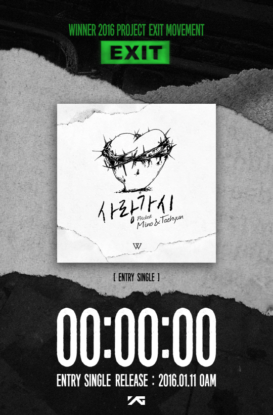 2월 1일 미니앨범 발표에 앞서 11일 0시 송민호와 남태현의 '사랑가시'를 선공개하는 위너는 음원 공개를 1시간 앞둔 10일 오후 11시 네이버 V앱 생방송 'ENTRY NIGHT / WINNER COUNTDOWN LIVE' 를 통해 팬들과 만난다.