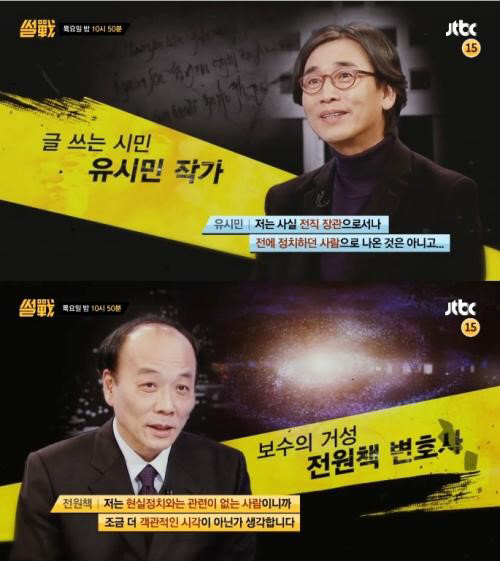 JTBC 이슈 리뷰 토크쇼 '썰전' 1부 뉴스 코너에 전원책 변호사와 유시민 전 장관이 새 패널로 합류하면서 내놓은 출사표가 눈길을 끌고 있다.