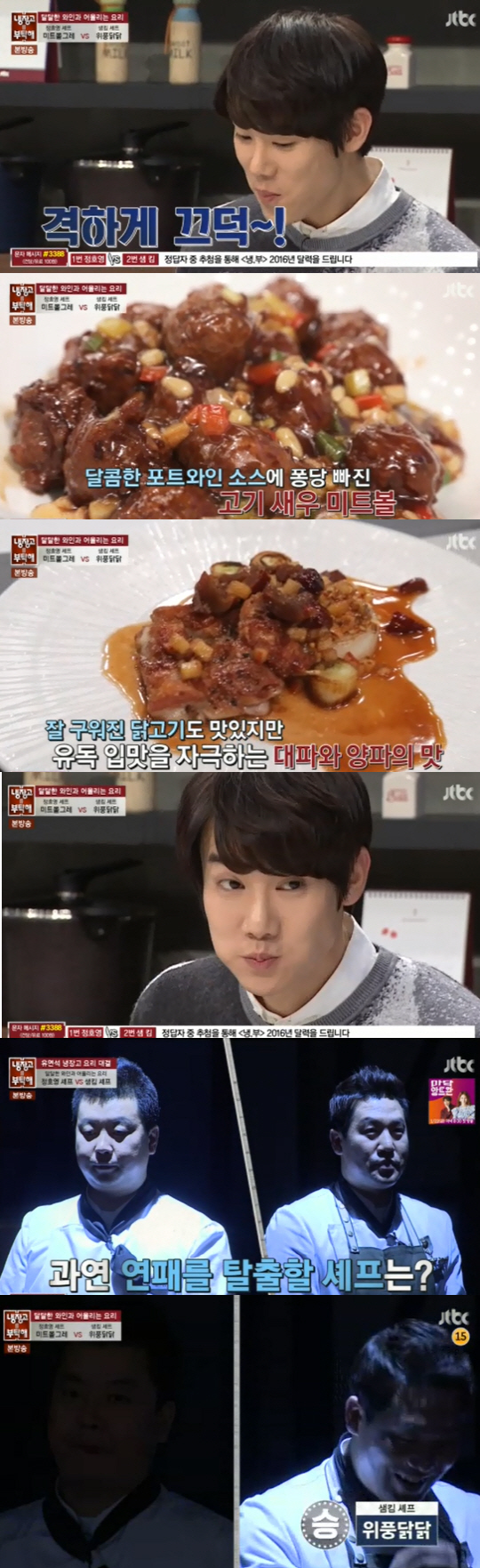 유연석은 정호영 셰프의 미트볼을 먹고 "평소 많이 먹어봤던 맛이 아닐까 생각했는데 와인이 듬뿍 들어가서 그런지 와인의 풍미가 많이 나고 잣과 과일맛도 나고 달콤하다"고 호평했지만, 샘킴의 요리를 선택했다.