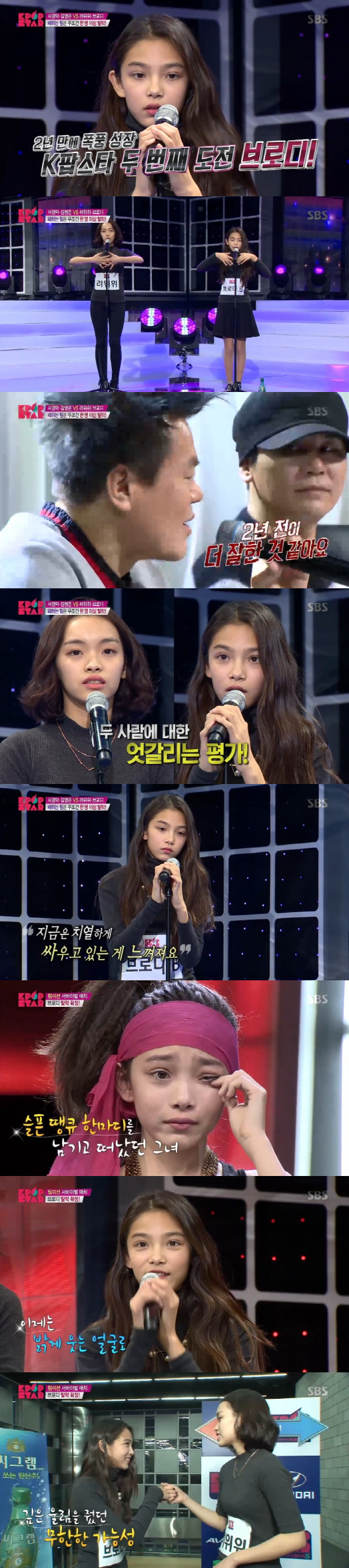 3년 전 탈락했을 때에도 세 명의 심사위원을 향해 감사의 인사를 전했던 브로디 B. 당시 눈물을 쏟았던 브로디 B와 달리 이번에는 덤덤하게 탈락을 받아들이며 쿨하게 실수를 인정했다. 비단 'K팝스타'로서 성장이 아닌 인생에 꼭 필요한 눈부신 발전이었다.