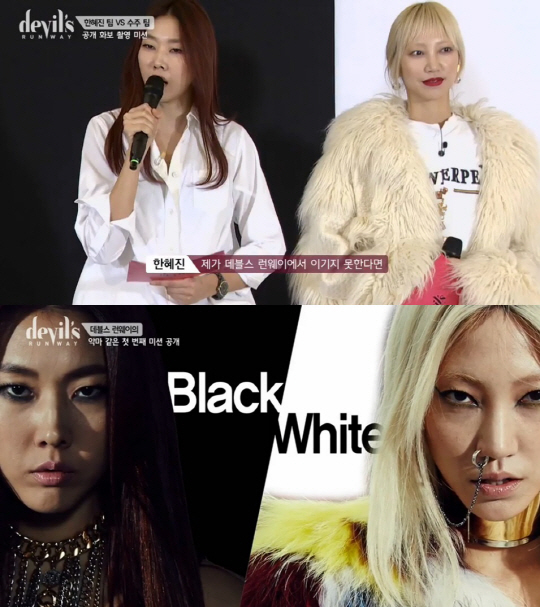 '데블스런웨이' 멘토이자 MC인 모델 한혜진과 수주가 첫 방송부터 날카로운 신경전을 펼쳤다.