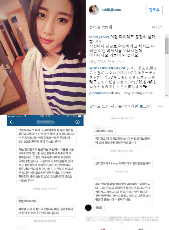 이후 4일 "제발 부탁드려요. 페이 좋고 다 맞춰드리겠습니다. 비밀 절대 보장되며 손님 한분과만 만남 부탁드립니다"라고 재차 요청했다.