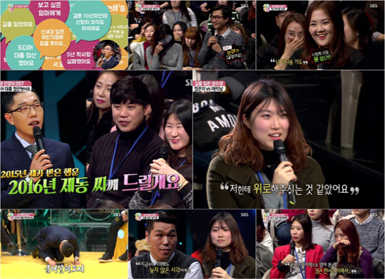 이날 '힐링캠프'에는 웃음뿐만 아니라 눈물도 있었다. 삼수생 정재희 씨는 자신이 갈 길을 잃어버렸다며 사연을 공개했다. 자신의 마음을 숨기려 더 크게 웃고 밝은 모습을 보여주려는 정재희 씨의 모습에 출연진들은 더욱 애잔해했다. "뭘 해야 될지도 모르겠다. 다시 도전할 생각은 없다. 사수는 인간이 할건 아니라고 생각한다"고 말했다. 그리고 진심이 담긴 출연자들의 응원에 눈물을 꾹 참는 모습이었다.