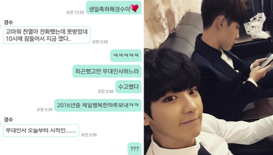 [스포츠조선닷컴 정안지 기자] 그룹 엑소 찬열이 도경수(디오)의 생일 축하 메시지를 남겼다.