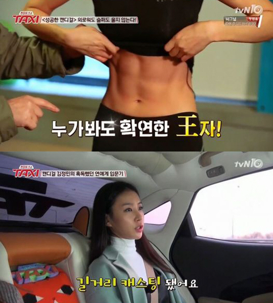 이날 김정민이 MC이영자와 만난 곳은 헬스장이었다. 이영자는 "요즘 김정민 복근이 난리다"라며 복근 공개를 요청했다.