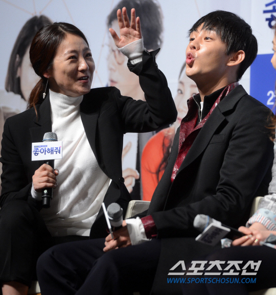 유아인과 이미연은 12일 서울 강남구 압구정 CGV에서 열린 영화 '좋아해줘'의 제작보고회에 참석했다.