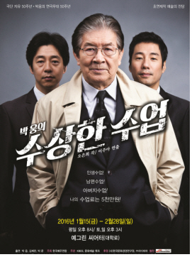 지난해 예술의 전당 기획 공연 시리즈로 화제를 모았던 '수상한 수업'이 2016년 1월 대학로에서 업그레이드돼, 관객들 앞에 선을 보인다. 특히 '수상한 수업'은 명배우 박웅이 TV에서 기존에 보여줬던 푸근한 아버지 이미지 대신 명품 연기로 새로운 매력을 전달한다. 50년 연기 인생을 지닌 박웅이 '명배우'란 어떤 것인지 보여주는 연극 무대이기도 하다. 명배우에 노련한 극작가 오은희와 독창적인 연출가 이주아, 뮤지컬 감초연기로 인기를 끌고 있는 김재만, 연극무대에서 꾸준히 활동 중인 박준 등이 함께 해 명품연극 '수상한 수업'을 완성 시켰다.