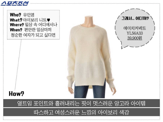 #어디꺼 #스포츠조선 #오마이비너스 #유인영 #니트 #여자의_청초함은_니트에서_완성된다 #아이보리까지_얹었다 #에이치커넥트