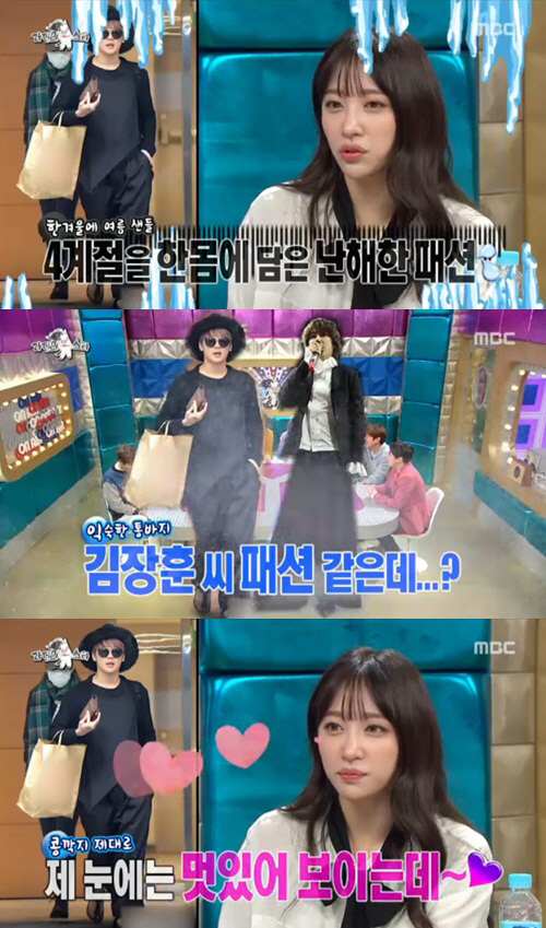 이어 하니는 "패션에 4계절이 있다고 한 댓글도 있더라"고 말했고, MC들은 "김장훈 패션 같다"고 디스했다.