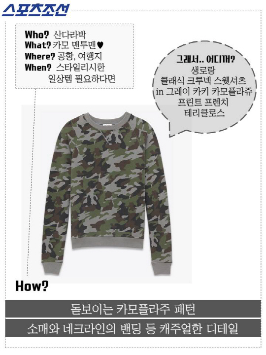 #어디꺼 #스포츠조선 #산다라박 #맨투맨 #카모플라주 #밀리터리룩마저_발랄한_그녀 #앞머리롤포인트 #생로랑