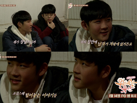 그리고 나서 환희는 마음속에 있는 이야기를 털어놓는다. 환희는 "저희 집안에 남자가 저밖에 없거든요. 제가 장남이니까 부담도 된다"며 숨겨왔던 이야기를 꺼내고, MC그리는 환희를 가만히 바라봐 이들 사이에 어떤 교감이 있었을지 궁금증을 자아낸다.