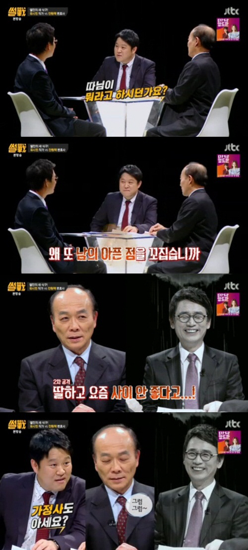 이에 전원책은 "왜 또 남의 아픈 점을 꼬집냐"며 "딸하고 요즘 사이 안 좋다더라"며 유시민을 당황하게 만들었다.