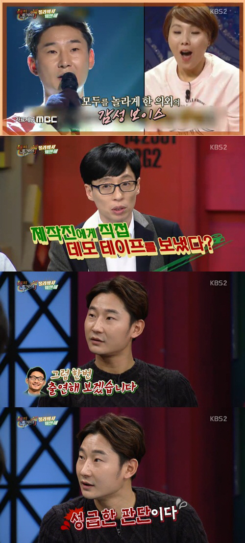 [스포츠조선 조윤선 기자] '해피투게더3' 이천수가 '복면가왕' 출연 비화를 공개했다.