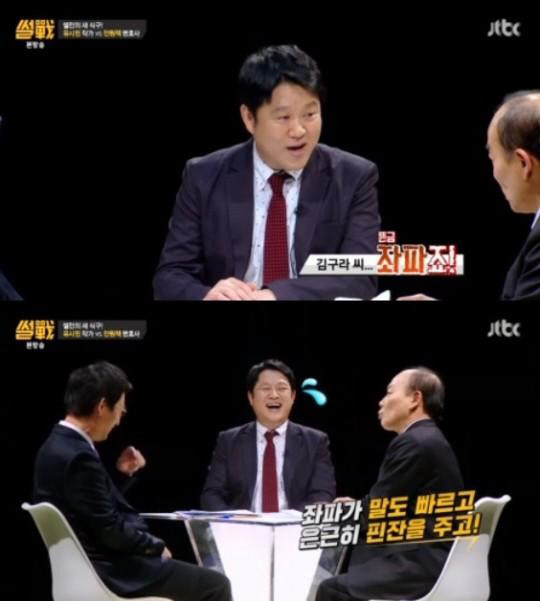 이에 당황한 김구라는 "저는 중도다"라고 답했고, 전원책은 "중도를 지키지 않으면 방송 중에 일어나는 수가 있다"고 농담조의 협박으로 웃음을 자아냈다.
