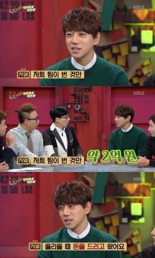 또 황치열은 "댄스 팀이 번 것만 2억 정도를 벌었다"며 "서울에 올라올 때 번 돈 4000만 원을 부모님께 드리고 상경했다. 부모님께 내가 해내겠다는 걸 보여드리고 싶었다"고 말했다.