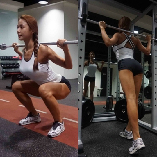 레이양은 최근 자신의 인스타그램에 헬스장에서 스쿼트 운동을 하는 모습을 공개했다.