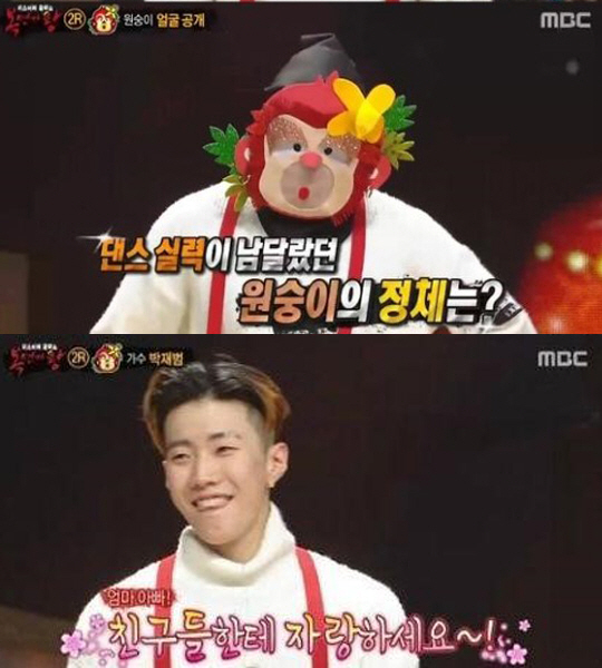 이날 공개된 원숭이의 정체는 래퍼 박재범이었다. 박재범은 이날 김연우의 '내가 너의 곁에 잠시 살았다는 걸'을 R&B 창법으로 개성있게 불렀다. 이윽고 가면을 벗은 박재범은 "부모님 새해 선물이다. 여기 한 번 출연하면 얘기거리가 되더라"라고 말했다.