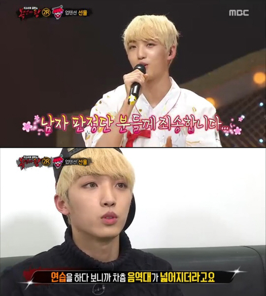 복면을 벗은 어우동은 놀랍게도 여자가 아닌 남자였다. 신인 남성 아이돌 업텐션의 선율이었다. 패널과 관객들은 모두 '멘붕'에 빠졌다.