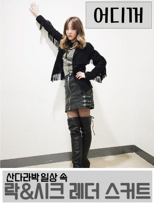 [어디꺼] 산다라박 일상 속 락시크 무드의 레더 스커트?