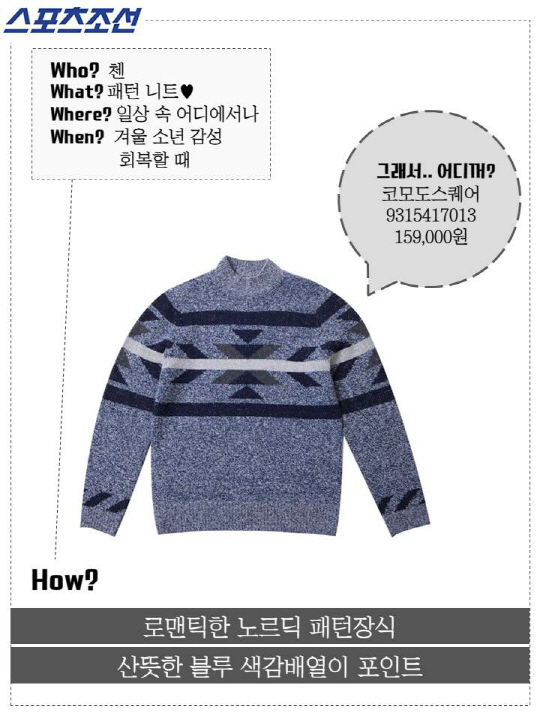 [어디꺼] 엑소 첸의 로맨틱한 노르닉 패턴 니트?
