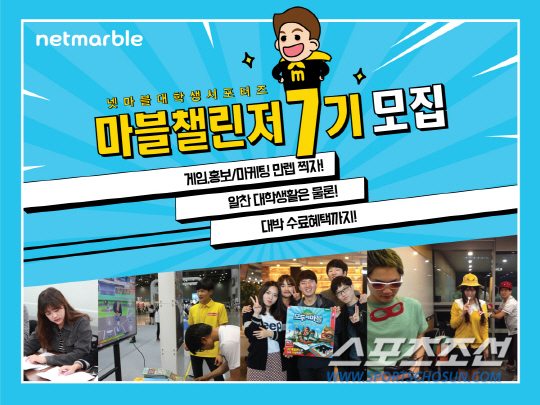 넷마블게임즈는 대학생 서포터즈 '마블챌린저' 7기를 모집한다고 18일 밝혔다.